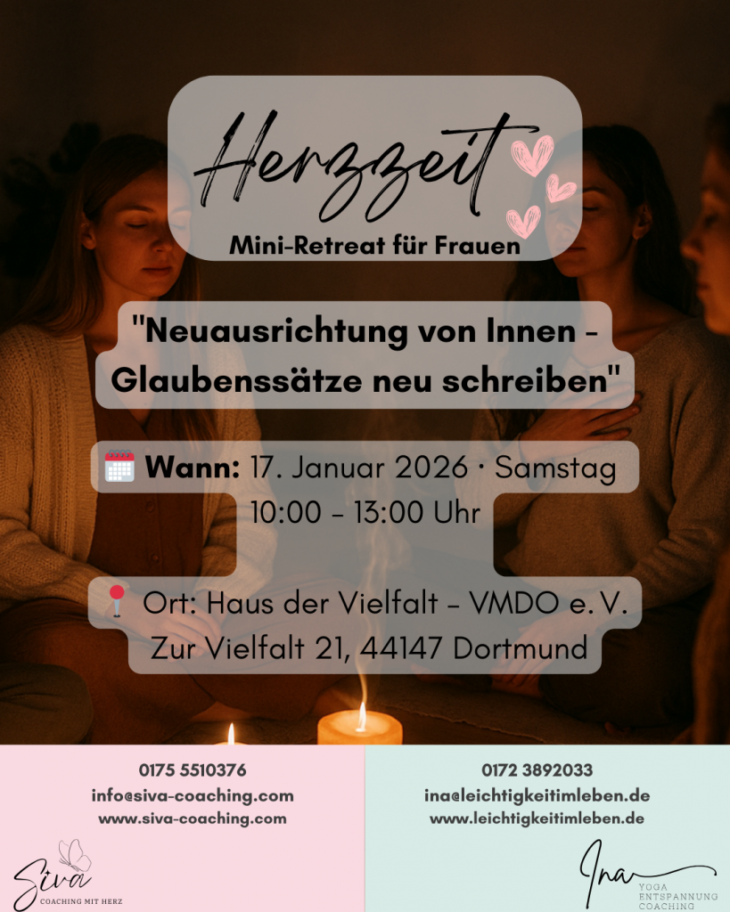 Mit unserer Mini-Retreat-Reihe „Herzzeit“ laden wir – Ina Häselhoff und ich – dich zu einer Reise zu dir selbst ein.